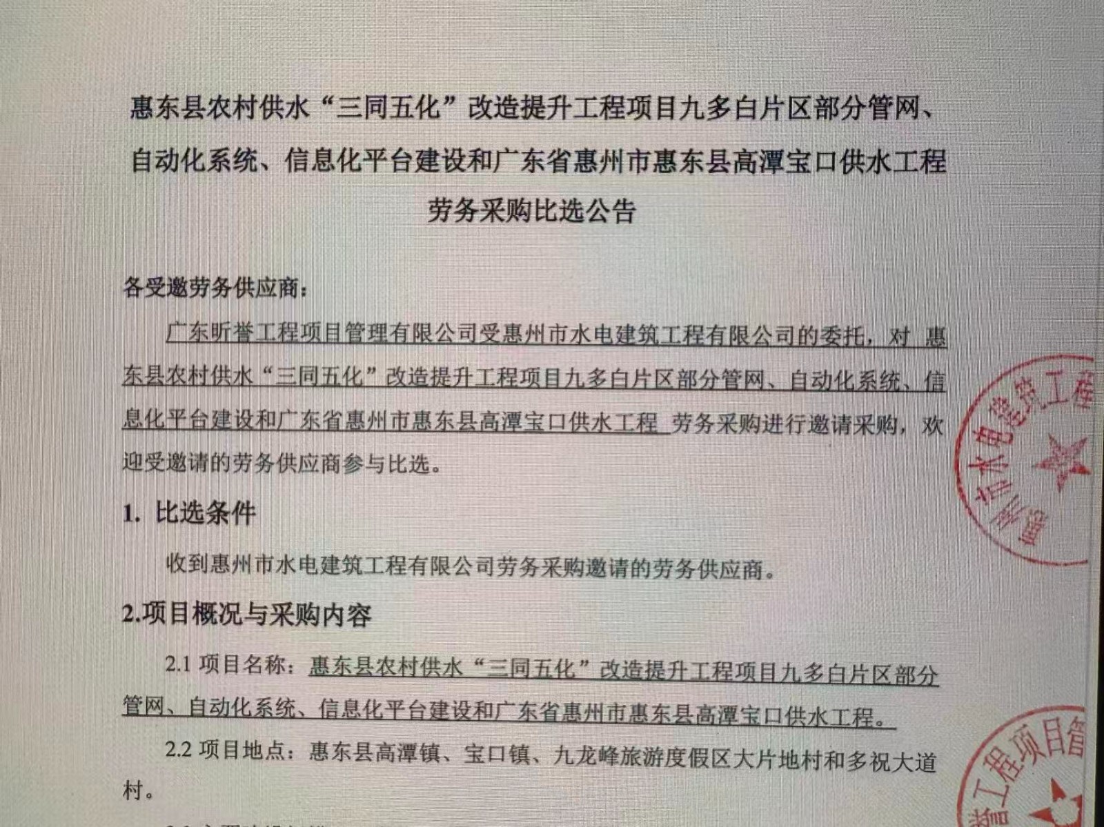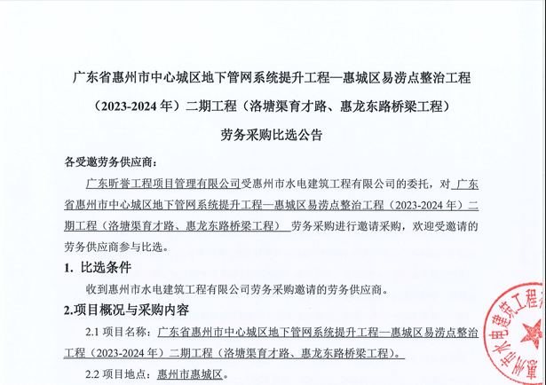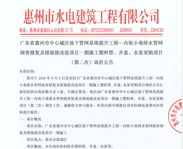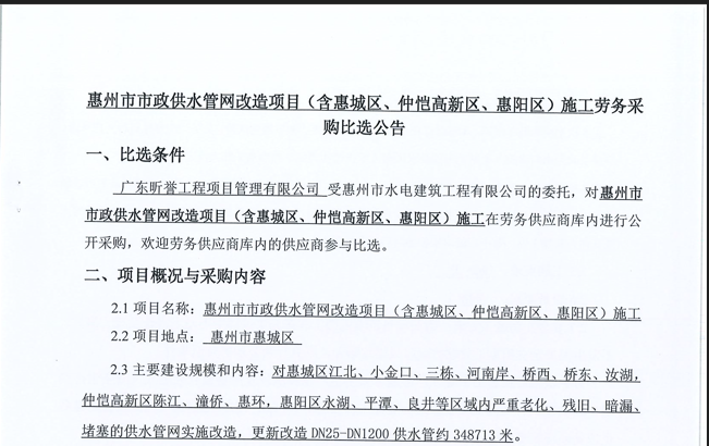 惠州市水電建筑工程有限公司成立于一九六四年四月,隸屬惠州市水務(wù)集團(tuán)有限公司,是一家國有綜合性施工企業(yè),主營水利水電工程、房屋建筑、市政工程等施工業(yè)務(wù)。公司擁有水利水電工程施工總承包一級(jí)、建筑工程施工總承包一級(jí)、市政公用工程施工總承包一級(jí)、公路工程施工總承包三級(jí),公路路基、路面及建筑裝修裝飾專業(yè)承包二級(jí),環(huán)保工程、機(jī)電安裝、河湖整治、輸變電工程專業(yè)承包三級(jí)等經(jīng)營資質(zhì)……